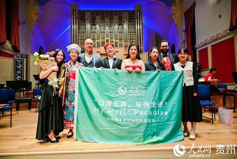 人民网贵阳9月29日电 (赵静 徐量 陈洁泉)伦敦时间9月28日晚,“山海无界・乐传全球”中欧艺术交流音乐会在伦敦皇家音乐学院杜克大厅举行。来自贵州文演集团音乐家与欧洲音乐家同台演出,通过跨文化理解、协同与共创奏响“中欧和弦”。