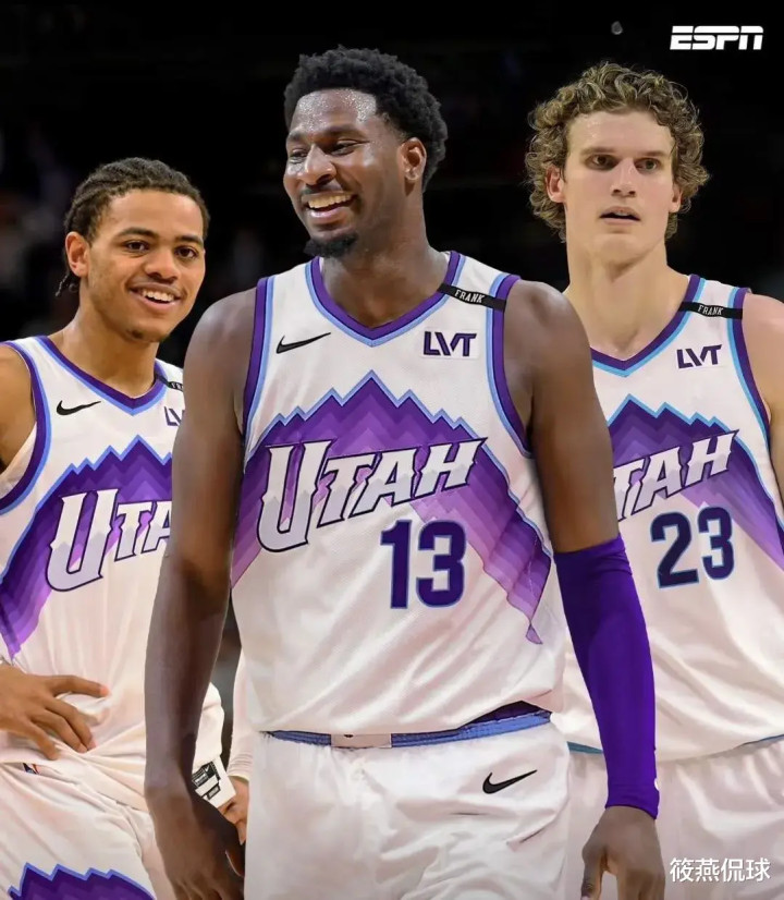 话说爵士一直再摆烂,又不努力打进季后赛,为什么还要吃进小贾的大合同呢?得到JJJ这个防守悍将爵士可以直接从摆烂模式直转向争胜:JJJ将与劳里·马克卡宁(Lauri Markkanen)、沃克·凯斯勒(Walker Kessler)组成梦幻前场三人组,防守端瞬间升级为联盟顶级,进攻火力也更均衡。